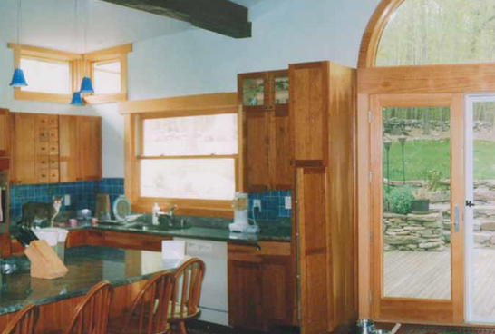 The roof configuration blends seamlessly with the existing house while allowing for increased ceiling heights within the new extension. Distinctive details include Yankee gutters, chain leader drains terminating at decorative stone spill plates, and an ipe wood deck extending into the rear yard. Window configurations were carefully coordinated with kitchen cabinetry and circulation paths, ensuring both functional efficiency and visual balance throughout the interior.
